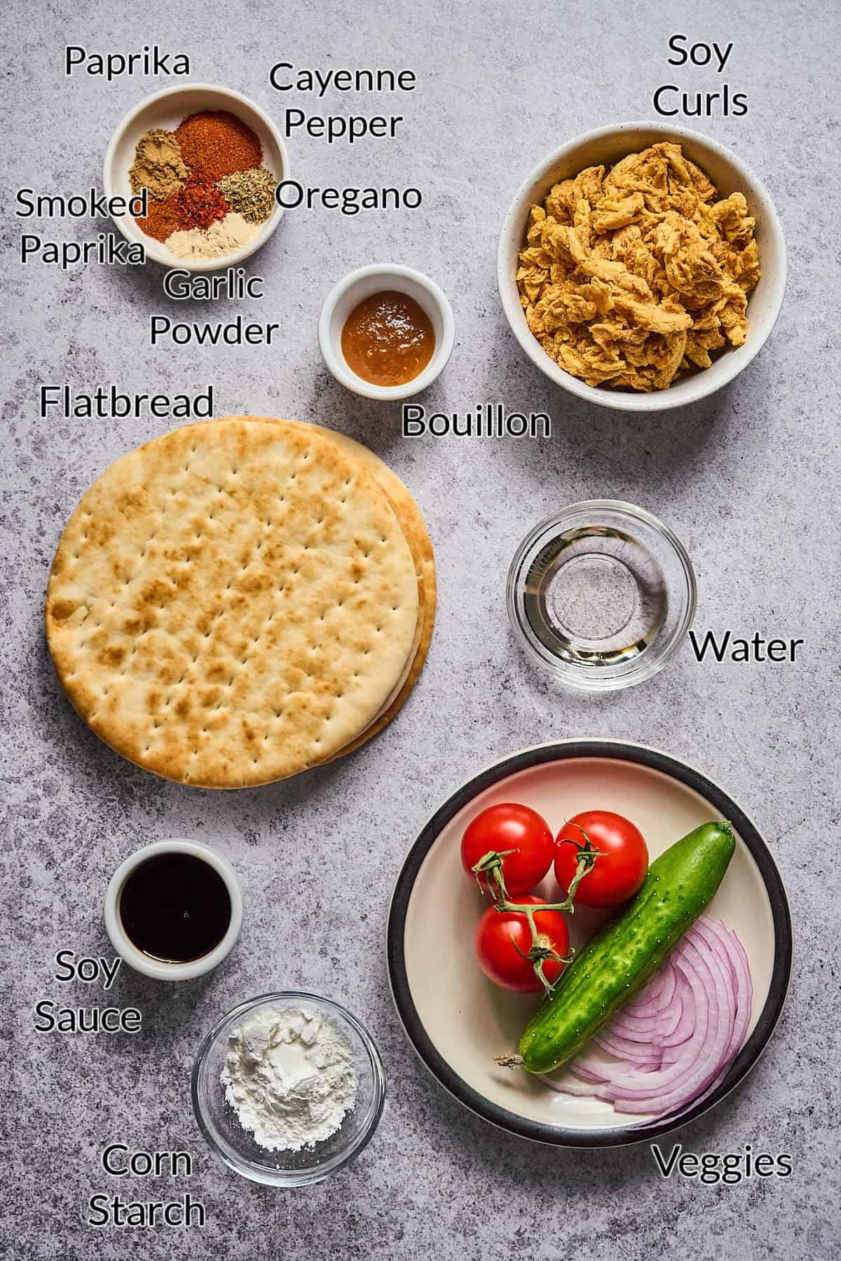 - Serve the soy curls in warmed pita or flatbreads, topped with desired sauce and toppings.